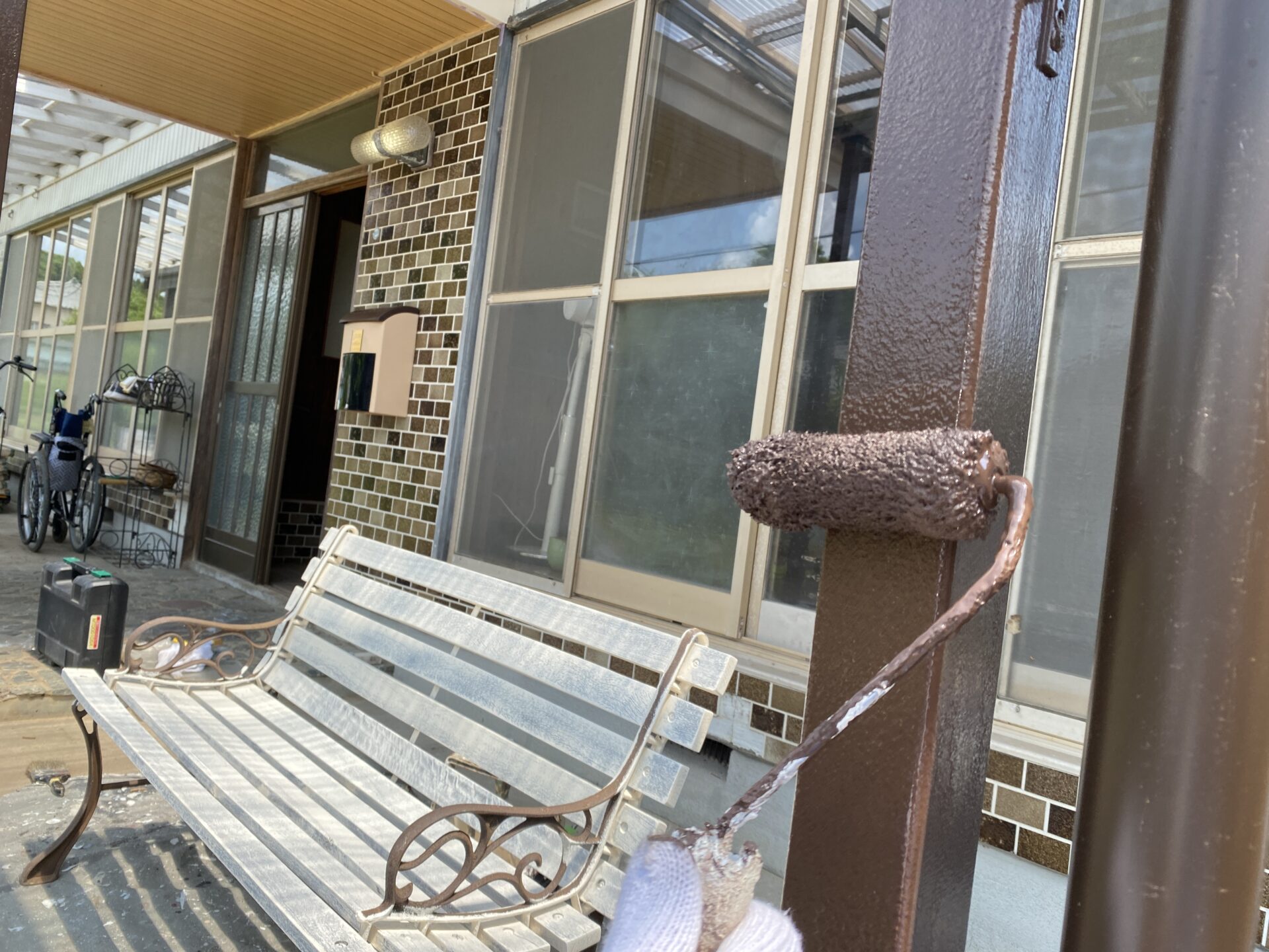 外壁2面以外にもテラスの鉄骨も塗装します。
